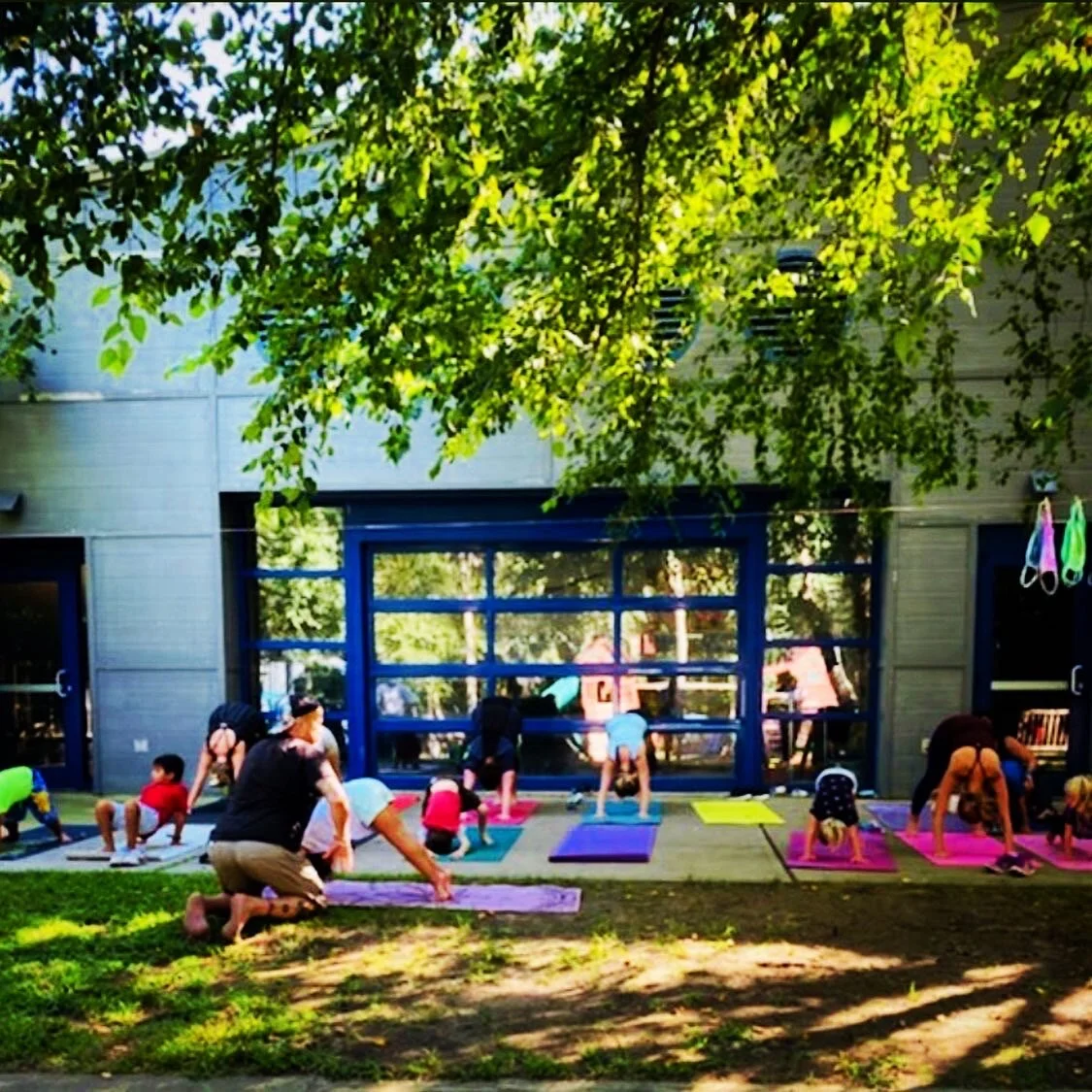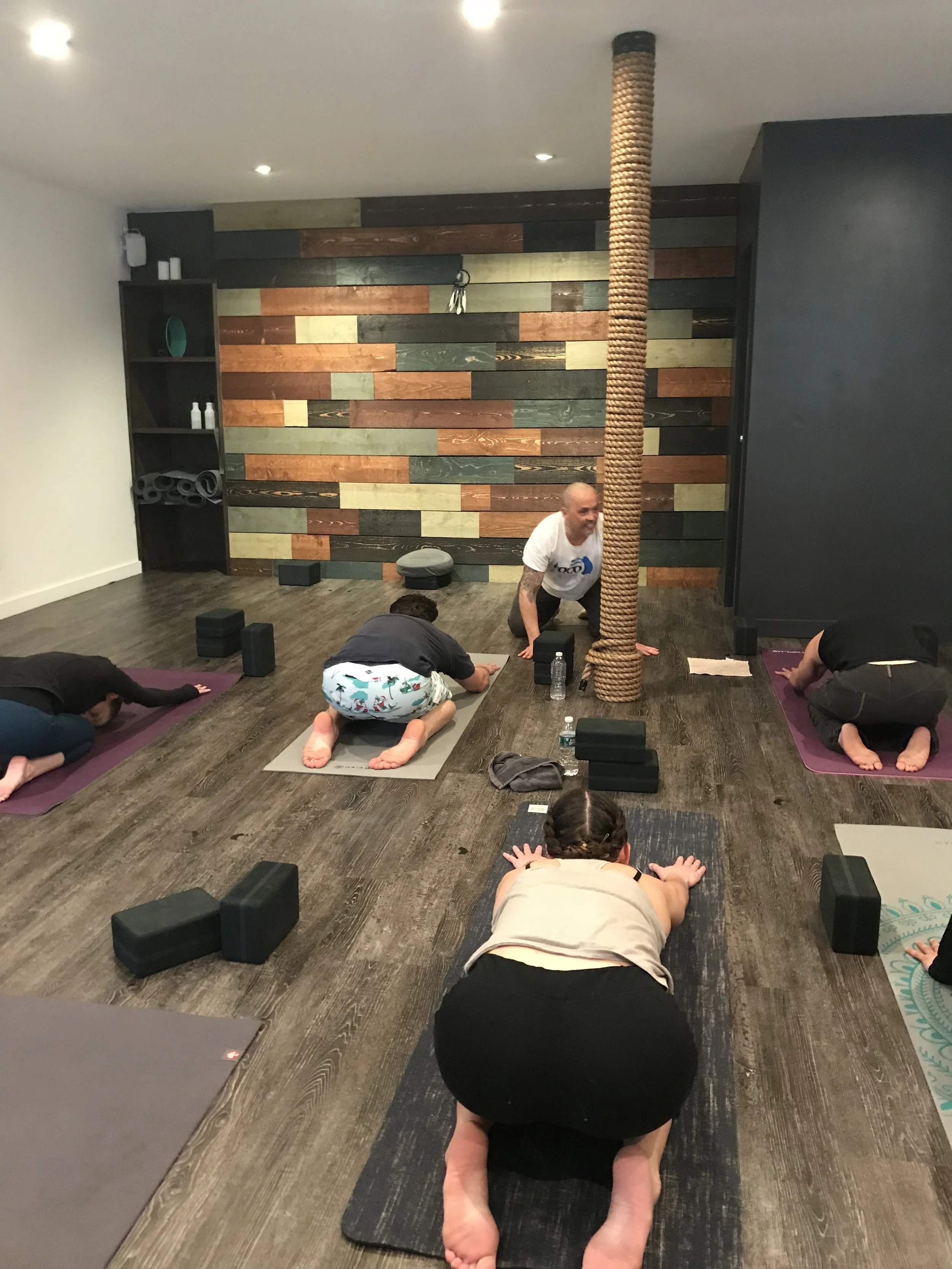 of all the spaces + studios to practice yoga + meditation why did you choose us, the speakeasy of breath and movement tucked in next to a trash compactor in the back parking lot of Marshals? `